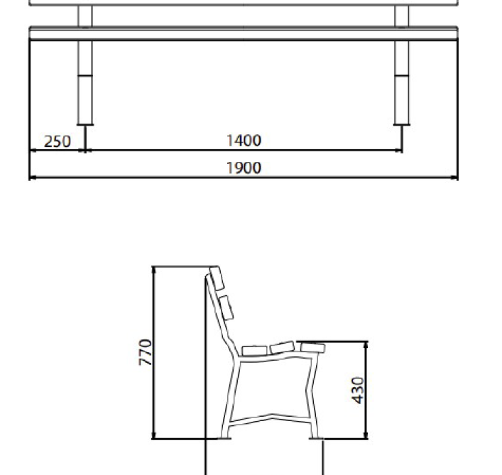 Banc STELVIO urbain assise et dossier en lattes fines de pin nordique