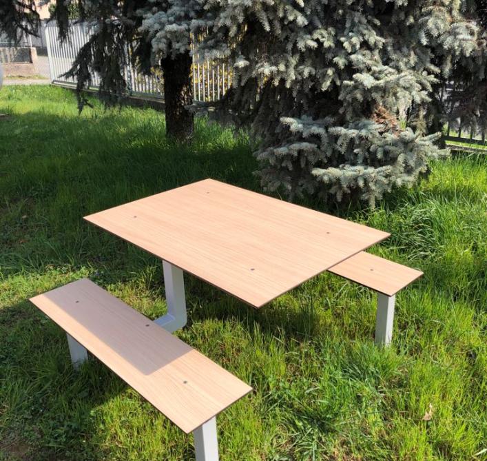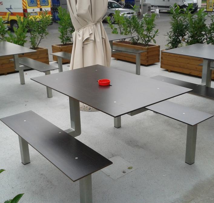 Métal zingué à froid verrnis epoxy 7 coloris - plateau et bancs compact - existe en version tout métal et ronde