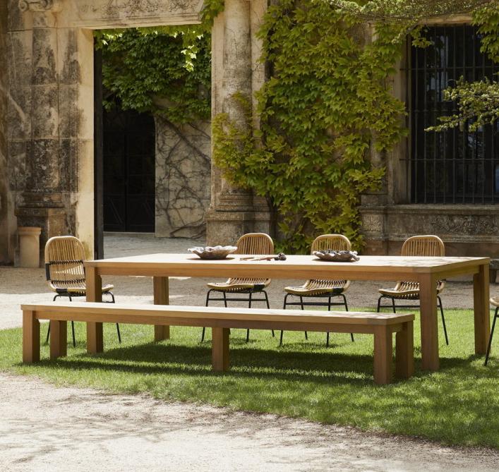 Mobilier eco responsable fabriqué en iroko massif de première qualité, pour l'entretien utiliser un chiffon doux humidifié avec de l’eau et un produit nettoyant non abrasif, Tout bois massif exposé en extérieur change d’aspect et de couleur ce qui n’altère en rien sa qualité. Nécessite un entretien régulier.
