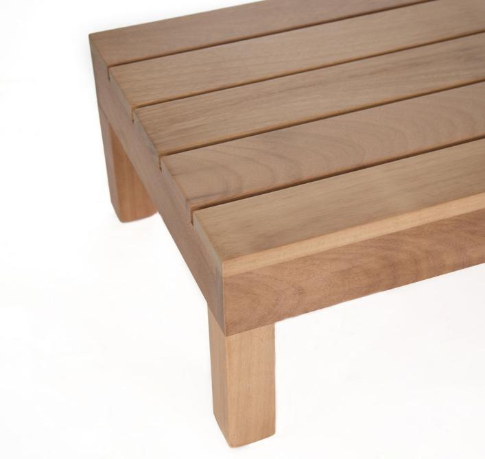 Mobilier eco responsable fabriqué en iroko massif de première qualité, pour l'entretien utiliser un chiffon doux humidifié avec de l’eau et un produit nettoyant non abrasif, Tout bois massif exposé en extérieur change d’aspect et de couleur ce qui n’altère en rien sa qualité. Nécessite un entretien régulier.