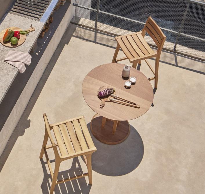 Mobilier eco responsable fabriqué en iroko massif de première qualité, pour l'entretien utiliser un chiffon doux humidifié avec de l’eau et un produit nettoyant non abrasif, Tout bois massif exposé en extérieur change d’aspect et de couleur ce qui n’altère en rien sa qualité. Nécessite un entretien régulier.