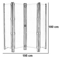 Structure en Hêtre Massif, 4 ventaux, Hauteur 180 cm, Largeur déployé de 195 cm. Ces ventaux sont des sépartions idéales, Bois en Hêtre issu de production Eco responsables PEFC, Production de qualité lié à une expérience de prés de 130 ans et une certification ISO 9001., Tissus DOCRIL, 100% Acrylique teinté dans la masse, facile d'entretien, résistant aux UV, spécial extérieur