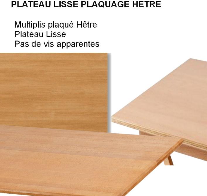 Piettement en Hêtre massif, Plateau en multiplis plaqué de hêtre. Permet une finition du plateau parfaitement lisse sans visserie apparente, ni rainures. Idéal avec housses et habillages textiles, Bois en Hêtre issu de production Eco responsables PEFC, Production de qualité lié à une expérience de prés de 130 ans et une certification ISO 9001.,