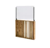 Séparateurs d'Espace Ecologique, Fabriqué en bois de nos régions - Pin Rouge (Pinus Sylvestris), il représente tous les avantages de l'ECO Conception tout en prenant en considération des contraintes d'utilisations, Faible Maintenance, Bois traité autoclave "Classe 4", Résistance à l'eau douce et les milieux huminde permanents, Nettoyage à leau sous pression possible. Quincaillerie traitée anti-rouille, Véritable Zone de confort sécuritaire. Modulable, Evolutif, Ephémère restent l'adn de ce concept révolutionnaire.