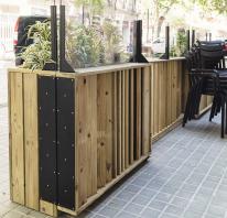 Séparateurs d'Espace Ecologique, Fabriqué en bois de nos régions - Pin Rouge (Pinus Sylvestris), il représente tous les avantages de l'ECO Conception tout en prenant en considération des contraintes d'utilisations, Faible Maintenance, Bois traité autoclave "Classe 4", Résistance à l'eau douce et les milieux huminde permanents, Nettoyage à leau sous pression possible. Quincaillerie traitée anti-rouille, Véritable Zone de confort sécuritaire. Modulable, Evolutif, Ephémère restent l'adn de ce concept révolutionnaire.