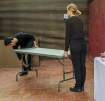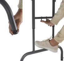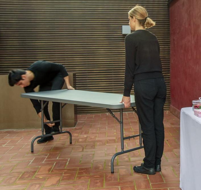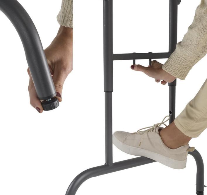Mécanisme pratique pour régler la hauteur de la table, 4 positions différentes. Système d'assemblage longitudinal. Nouveau mécanisme de blocage manuel au maniement très doux et anneaux autoglissants de sécurité inclus pour éviter le pliage involontaire. Régulateur de hauteur sur les 4 pieds. Chariot XLTrolley disponible avec capacité pour 20 tables. , Léger et résistant en cas de choc