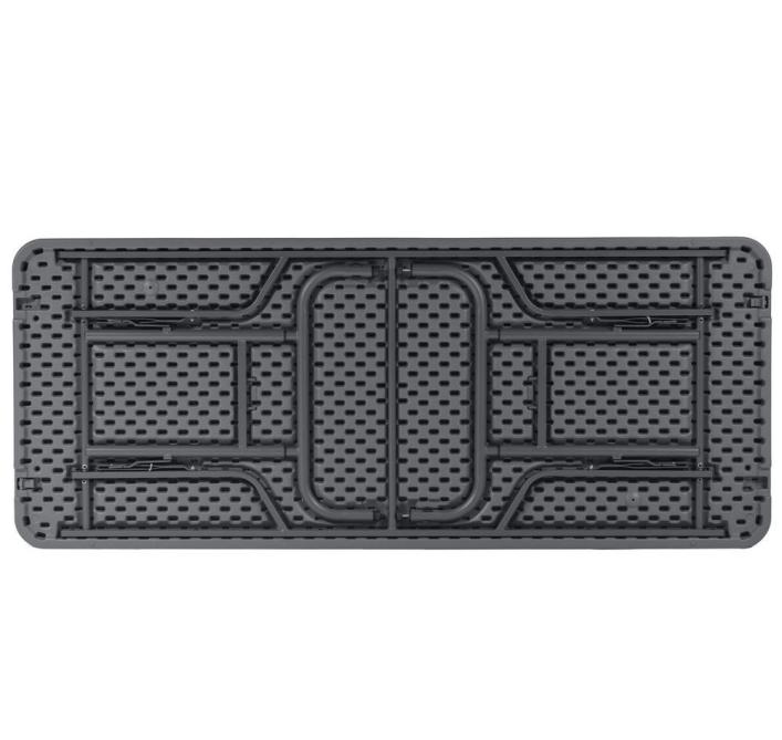 Table pliante de couleur grise foncée bleutée avec un plateau en polyéthylène de haute densité 100% pur.